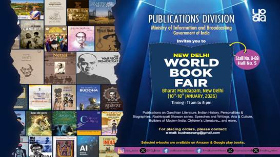 The Publications Division of the Ministry of information and broadcasting is exhibiting its extensive collection of books and journals at the New Delhi World Book Fair 2026, being held at Pragati Maidan, New Delhi, from January 10 to 18, 2026.